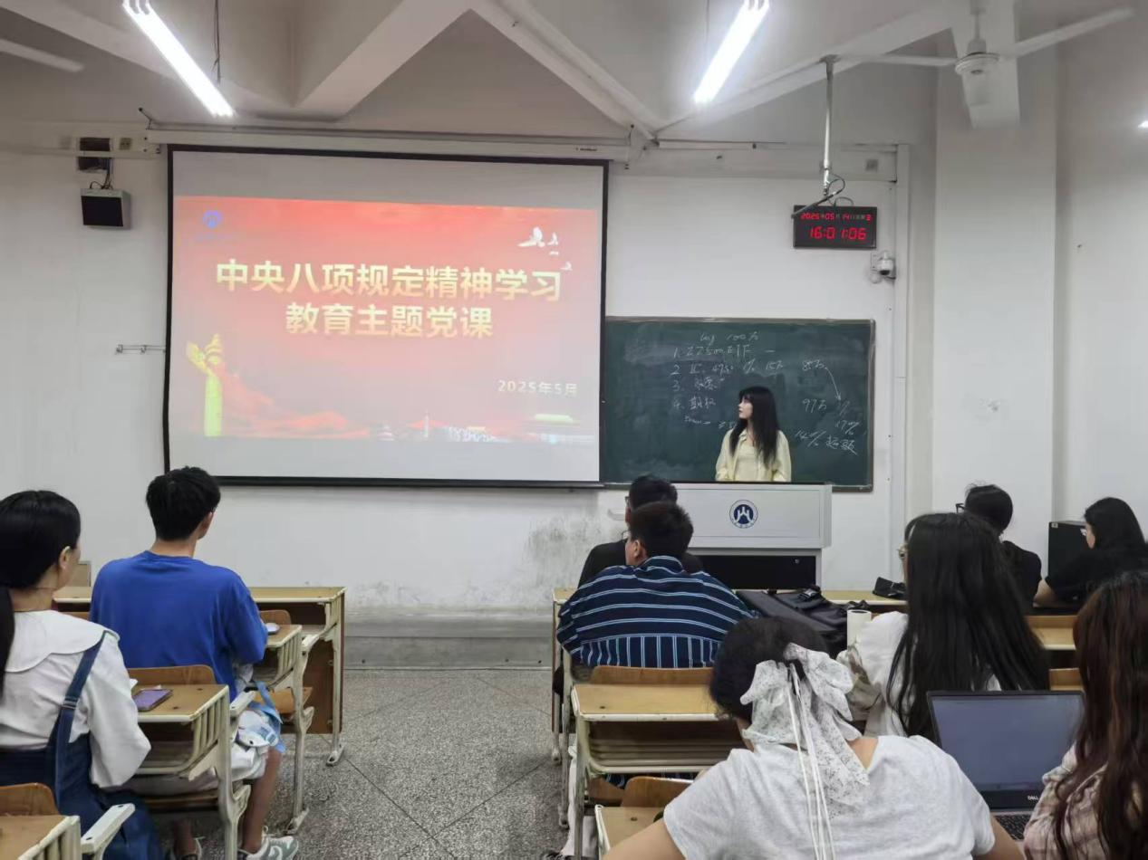 为深入贯彻中央八项规定精神学习教育,持之以恒深化作风建设,全面提升学生党员的理论素养。5月14日,黄金娱乐城 研究生第三党支部“青语新声”研究生理论学习宣讲团以“中央八项规定精神学习教育”为主题,在金融楼116室开展理论宣讲活动,研究生全体党员、2025年发展对象和积极分子参加。