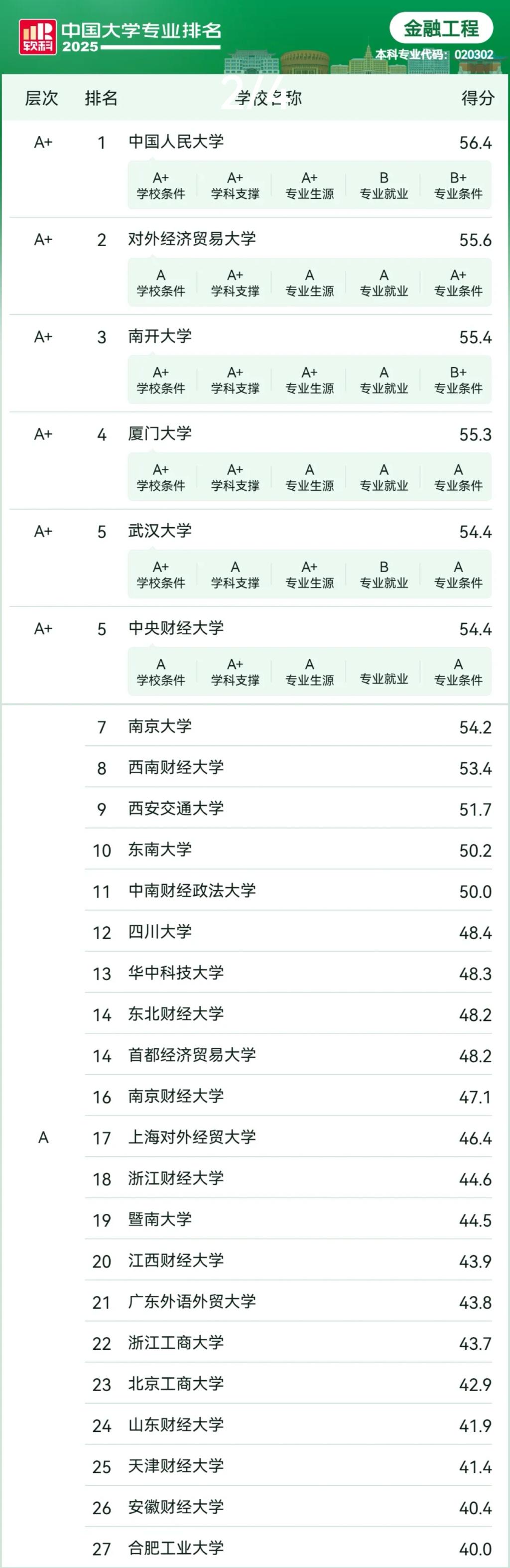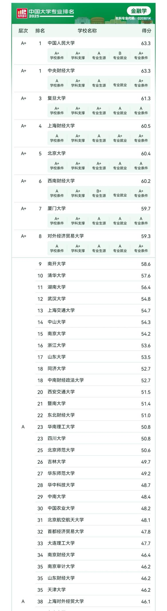 2025年6月18日,高等教育专业评价机构软科正式发布“2025软科中国大学专业排名”,排名包括836个专业,涉及93个专业类、12个专业门类。