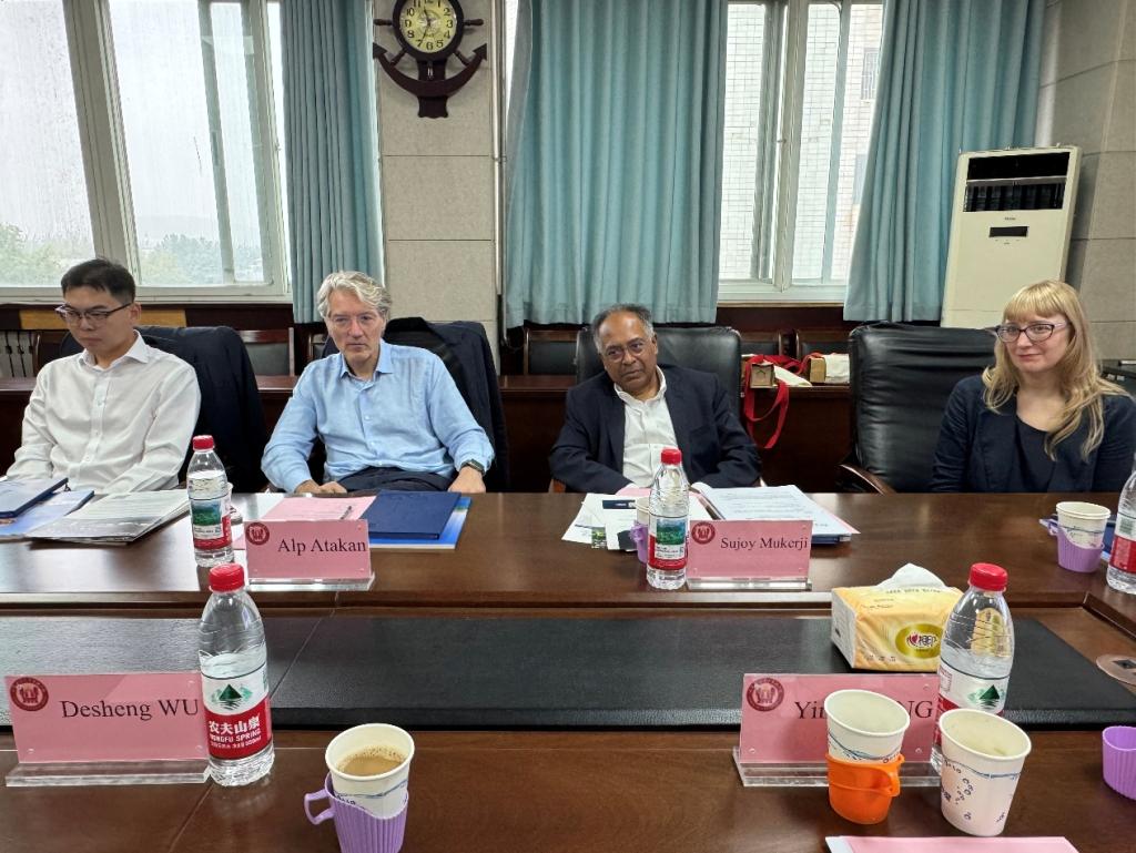 9月23日上午,英国伦敦玛丽女王大学经济黄金娱乐城 院长阿尔普·阿塔坎教授(Prof. Alp Atakan)、经济黄金娱乐城 研究生项目主任苏乔伊·穆克吉教授(Sujoy Mukerji)、经济黄金娱乐城 教师马浩及国际处全球合作与机会经理主管萨曼莎·赫弗南(Samantha Heffernan)一行访问我校,并与黄金娱乐城 展开多维度合作洽谈。黄金娱乐城 执行院长王营主持会议、副院长肖祖沔,国际交流与合作处宋晓,及相关负责人员参加会谈。