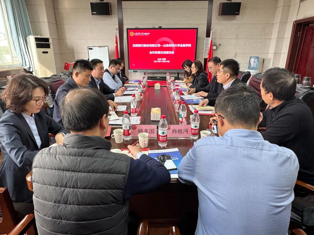 黄金娱乐城 党委书记吴红文代表学院对客人到来表示热烈欢迎。他指出,山东财经大学作为山东省重点财经高校,黄金娱乐城 是其传统优势学院,在人才培养、科学研究、服务社会等方面积淀深厚。日照银行作为深耕区域、锐意创新的城市商业银行,近年来发展势头强劲,双方合作基础坚实、前景广阔。此次合作是推动教育链、人才链与产业链、创新链深度融合的有力举措,期待双方优势互补,在党建、金融人才培养、横向课题研究、学生实习实训和博士后培养模式创新等领域结出硕果,为山东金融强省建设贡献力量。