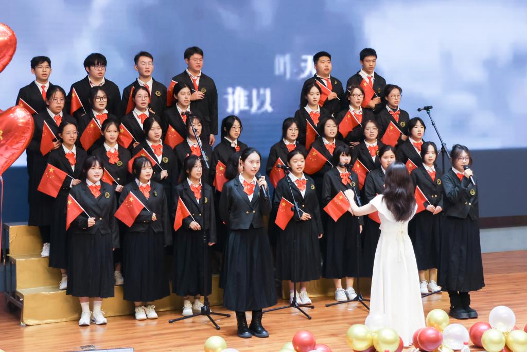 比赛尾声,全体工作人员齐聚舞台,与参赛同学共同唱响《我爱你中国》,以嘹亮歌声和真挚情感,深情抒发对祖国的无限热爱,为本次活动画上圆满句号。