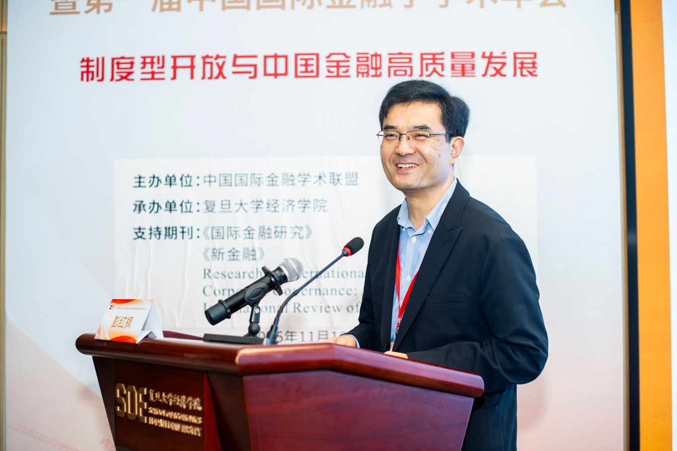 2025年11月15日晚,中国国际金融学术联盟第一届理事会会议在复旦大学顺利举行。11月16日,由中国国际金融学术联盟主办,复旦大学经济学院承办的中国国际金融学术联盟成立大会暨第一届中国国际金融学学术年会在复旦大学经济学院顺利举行,山东财经大学副校长彭红枫出席会议并致辞。
