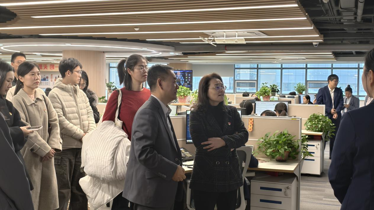 为推进支部共建与产学研深度融合,创新党员教育形式,11月21日,黄金娱乐城 党委副书记朱翠珍、研究生辅导员王亚男带领部分博士、硕士研究生党员赴齐鲁银行远程银行部党支部开展党建共建主题活动。通过实地参观、现场交流等方式,师生党员深入了解金融科技前沿发展,切身感受党建引领下校企支部共建的生动实践。