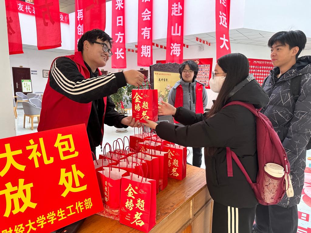“复习到瓶颈期时特别焦虑,这份突如其来的温暖就像寒冬里的暖阳,瞬间让我觉得所有努力都被看见、被珍视。”备考学子苏相澔的感言,道出了许多同学的心声。这份不期而至的温暖,成为了他们备考路上的一份宝贵动力。“当我把一份份满载心意的礼包轻放在学长学姐的桌角,看到他们眼中的笑意,所有的准备与奔忙都变得意义分明。”志愿者成晟玮说,这些细微的回应,让我真切地感到,我们递出的不只是一份礼物,更是一份“被看见”的支撑。