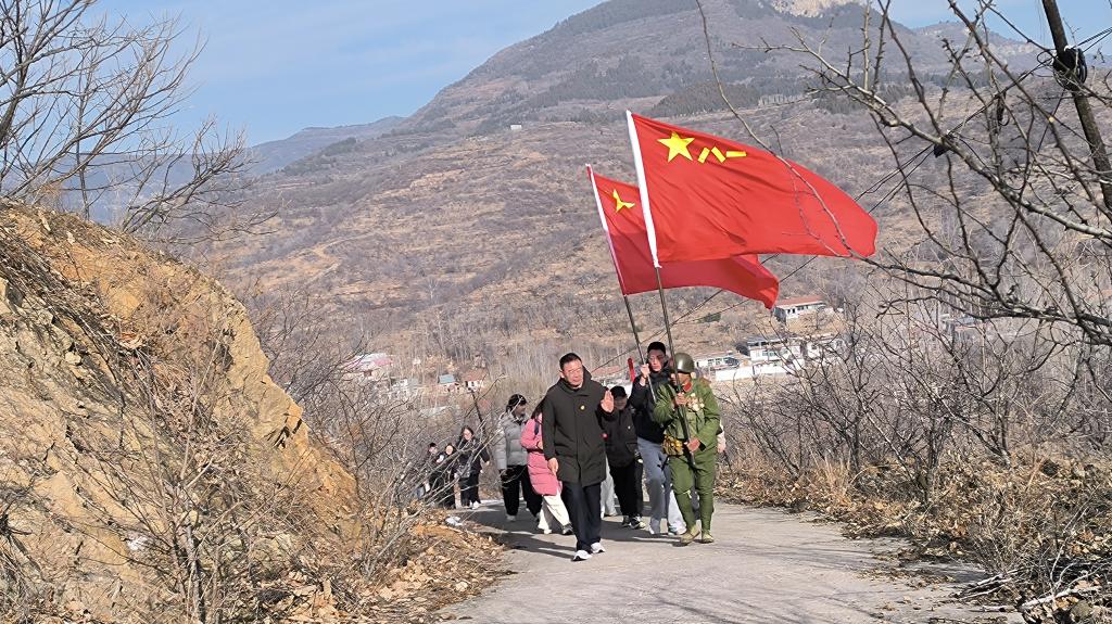 随后,为切实传承老山精神,全体人员在王恩亮的带领下开展徒步拉练活动,并共同观看对越自卫还击战纪实影像,银幕上战士们浴血奋战、守护家国的画面,伴着老兵细致动情的讲解深深震撼着在场每一个人,爱国热忱与历史使命感油然而生。