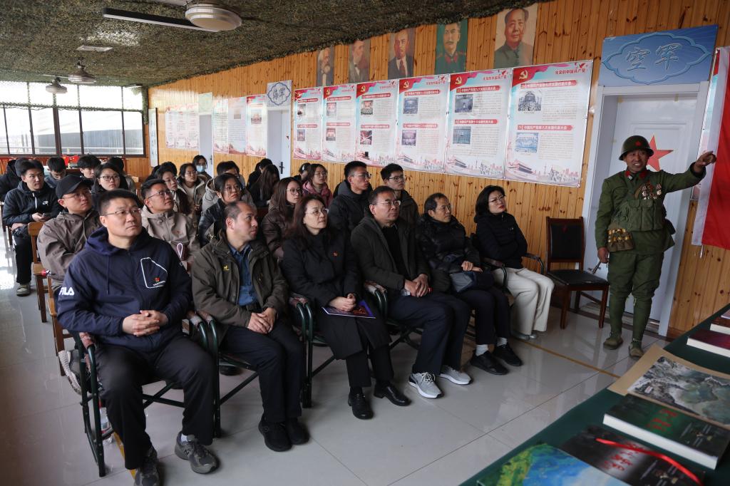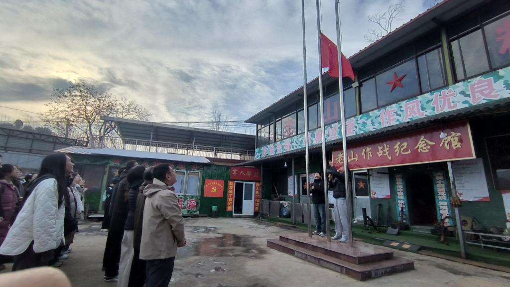 活动伊始,举行升旗仪式,全体人员高唱国歌并行注目礼,鲜艳的五星红旗冉冉升起,爱国情怀与责任担当在每个人心中激荡。在对越自卫还击战老兵王恩亮的引导下,大家走进老山作战纪念馆,馆内详实的史料与生动的场景复原,立体呈现了那段烽火连天的岁月。从武器上的斑驳痕迹到英雄战士的事迹介绍,每一处都让党员们深切感受到先辈的英勇无畏。