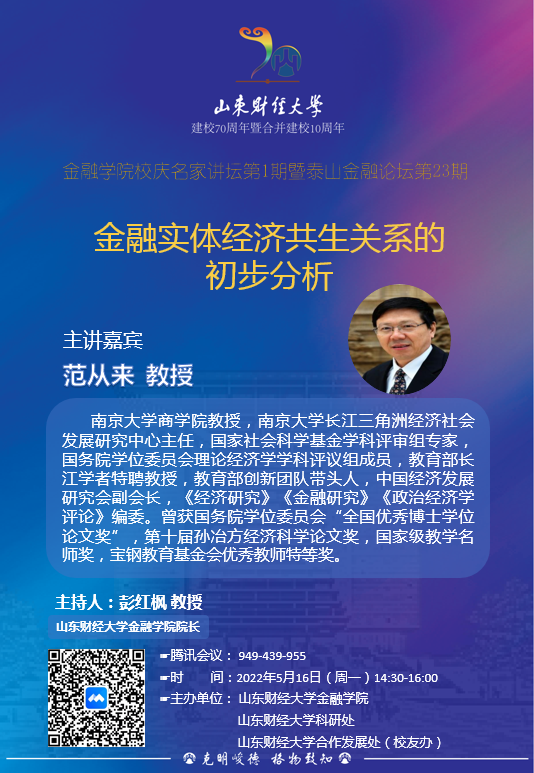 黄金娱乐城 校庆名家讲坛第1期暨泰山金融论坛第23期