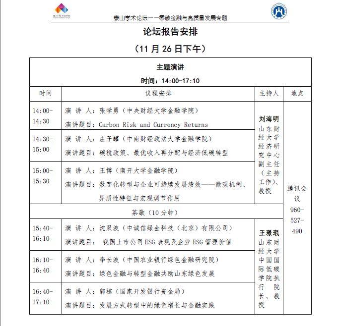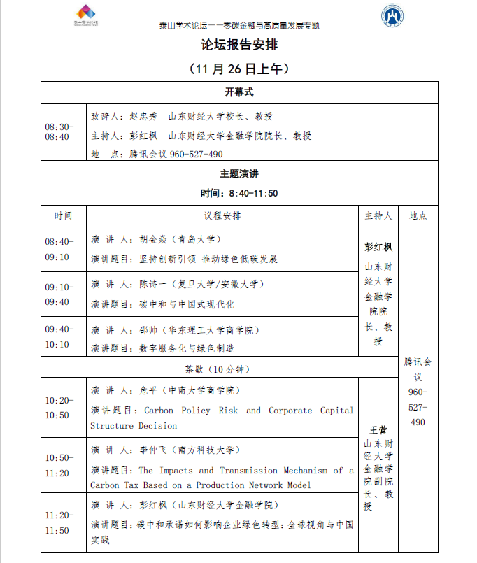 泰山学术论坛——零碳金融与高质量发展专题