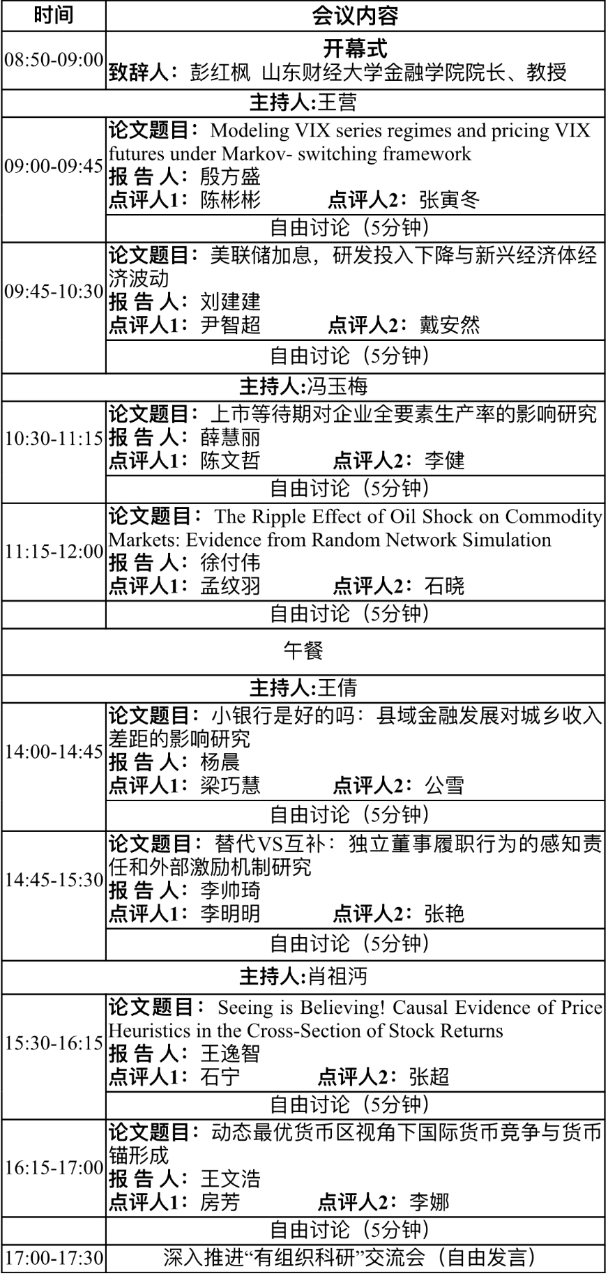 金融风险防控与金融强国建设研讨会 暨泰山金融workshop第10期 会议日程