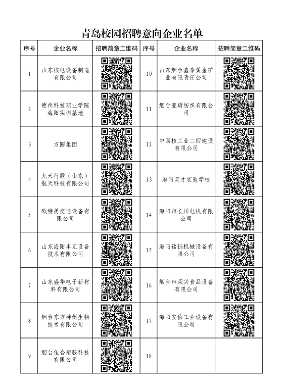 “青鸟计划 就选海阳” 暨海阳2023届校园招聘专场会与会企业名单(含招聘简章二维码)
