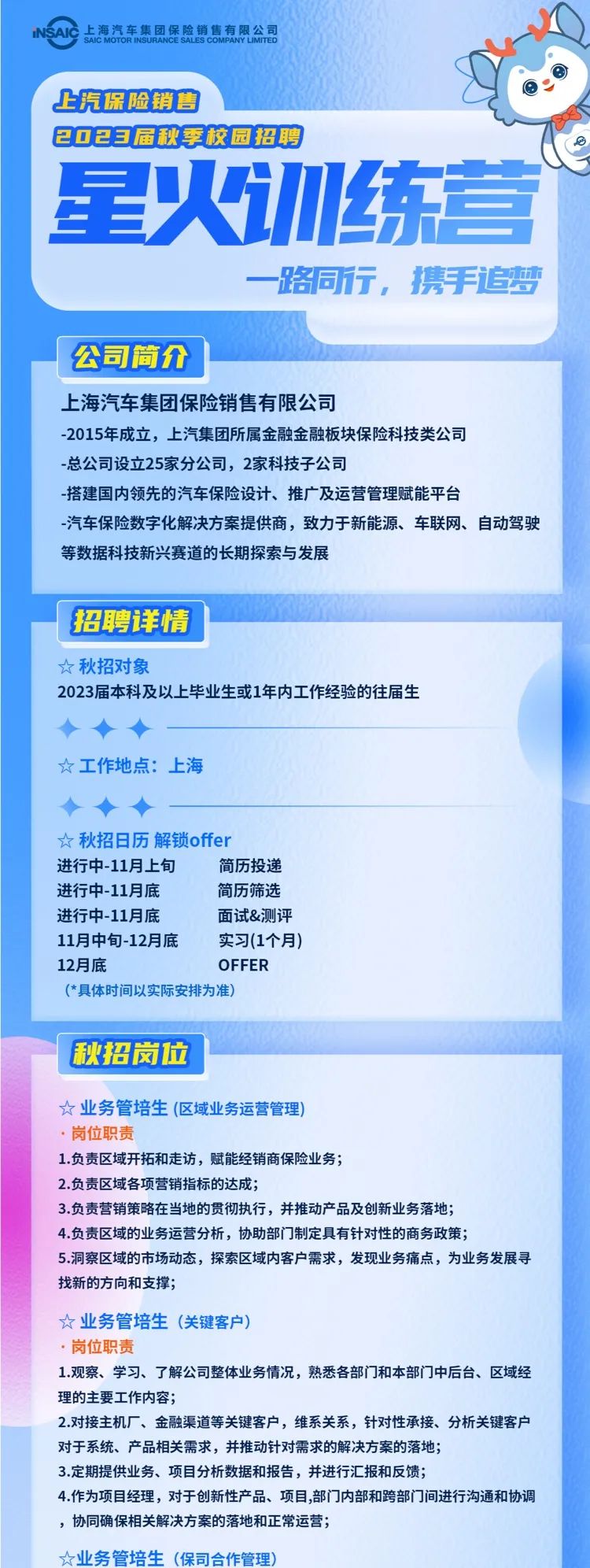 上汽保险销售2023秋季校园招聘