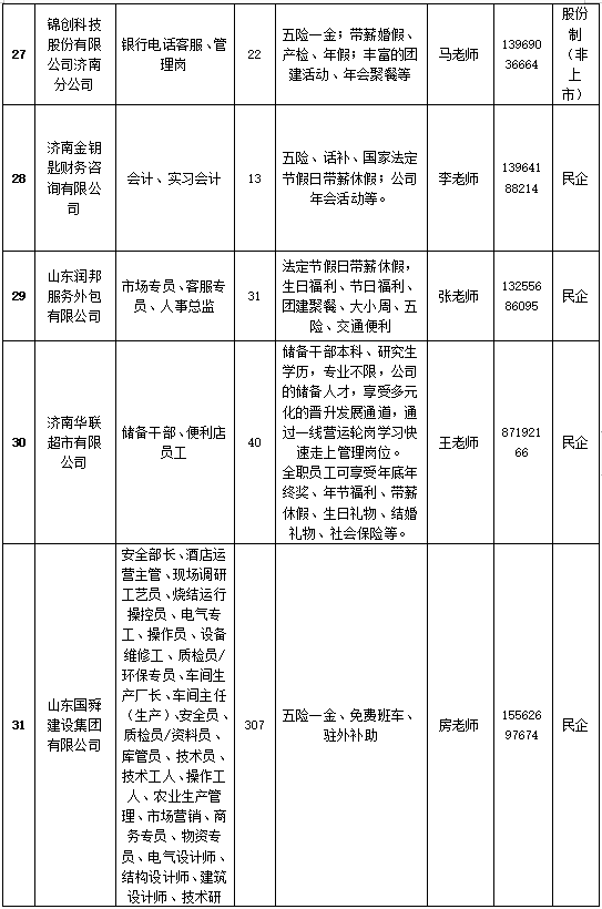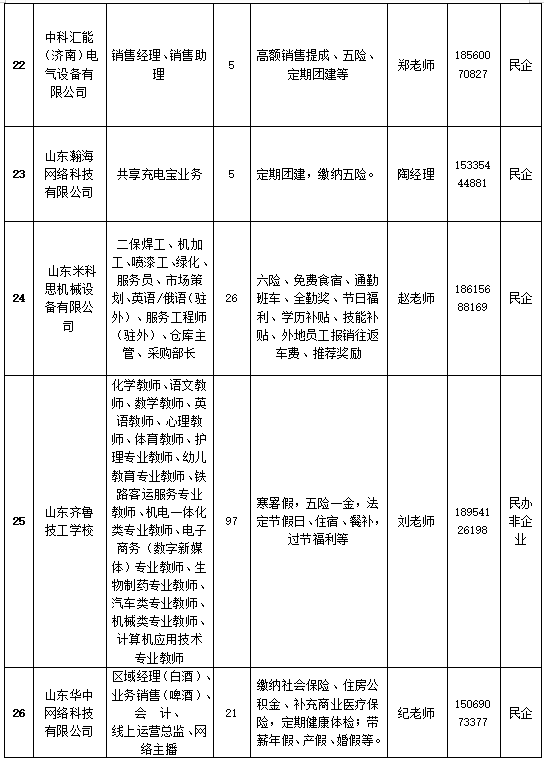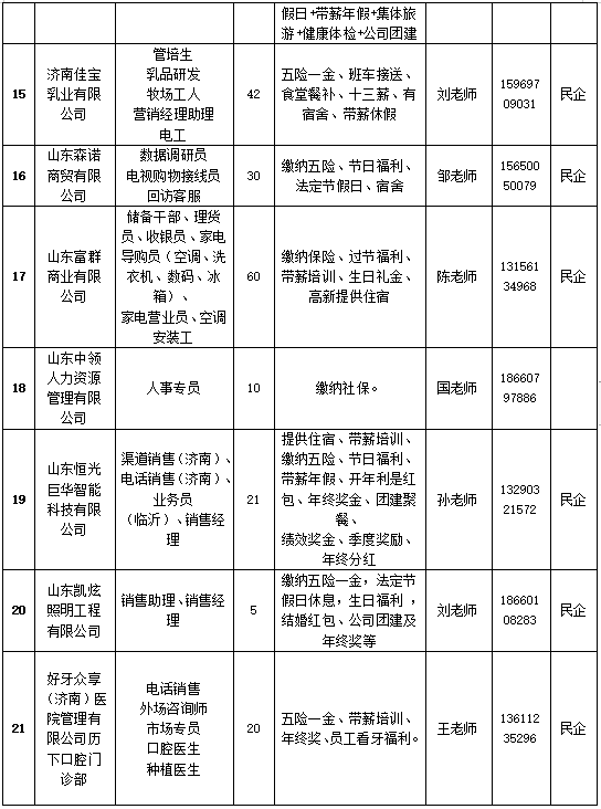 届时,中材人工晶体研究院(山东)有限公司、山东中农联合生物科技股份有限公司、齐鲁技工学校、佳宝乳业、博科控股集团、山东小鸭精工机械等近70余家央国企、上市公司、民企现场招贤纳士。岗位涉及研发、总裁助理、人事专员、汽车制造、财务管理、教师等各类岗位1600多个,薪资及福利待遇优厚。