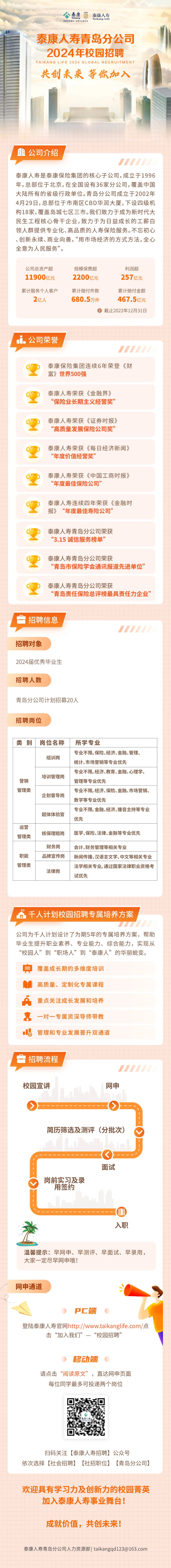泰康人寿青岛分公司2024年校园招聘