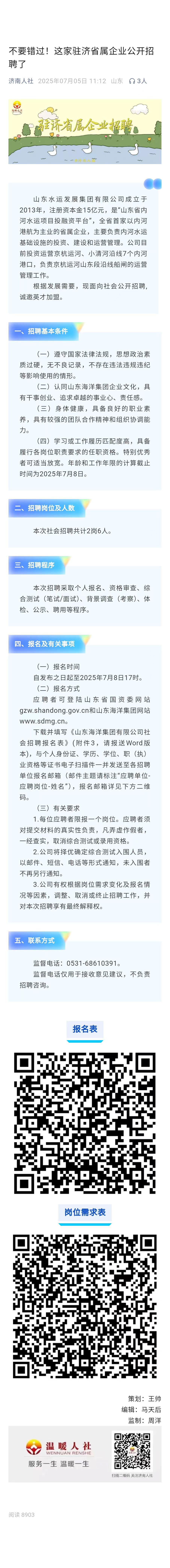 山东水运发展集团有限公司社会招聘