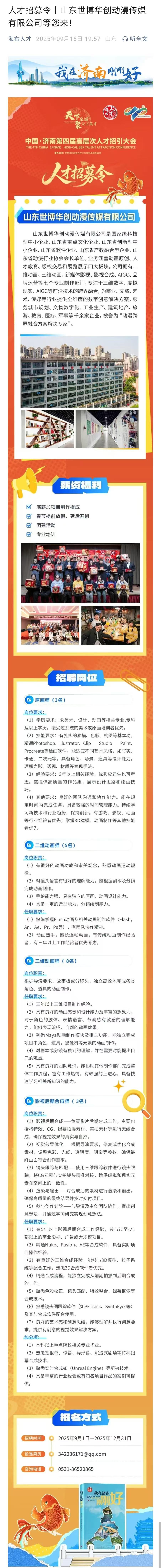 人才招募令丨山东世博华创动漫传媒有限公司等您来!