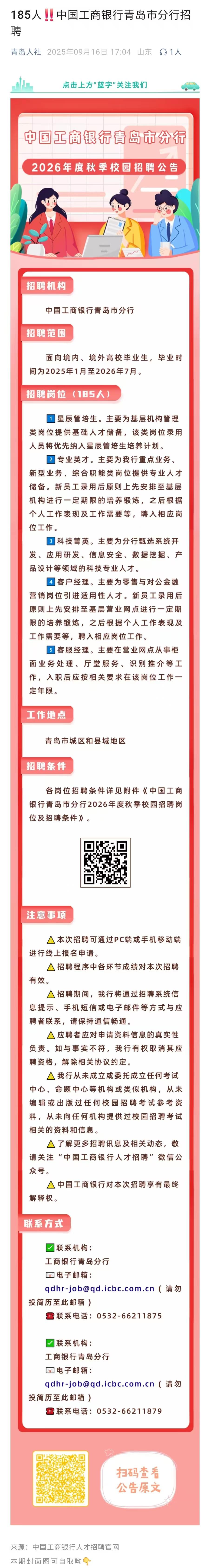 中国工商银行青岛市分行招聘