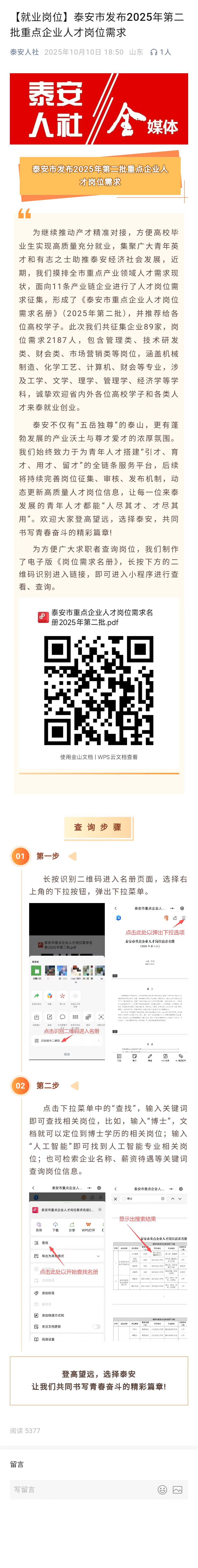 【就业岗位】泰安市发布2025年第二批重点企业人才岗位需求