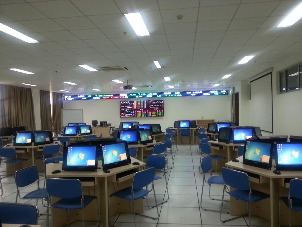 金融实验中心还承担着维护金融实验室日常运行、管理工作。金融实验室位于舜耕校区实验楼,共有3间独立实验室,1间设备存放室共计4个房间,总面积为580平方米。实验室始建于1999年,历经多年投资建设与整合改造,实验室的整体环境和实验功能逐渐完善,教学软件、硬件设施、国内外数据库软硬件配置等基本达到了国内领先水平,极大地满足了金融学科实验教学和科研的需要,也为学生进行校内实践教学活动和实习实训提供了必要的场所和条件。