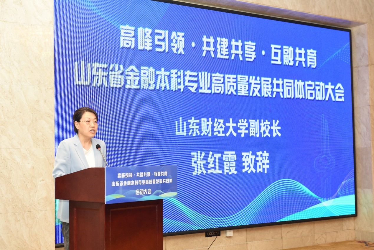 山东财经大学副校长、黄金娱乐城 院长彭红枫主持了开幕式,并对出席此次会议的各位领导、专家表示热烈的欢迎,希望能够把山东省金融本科专业高质量发展共同体建设好。